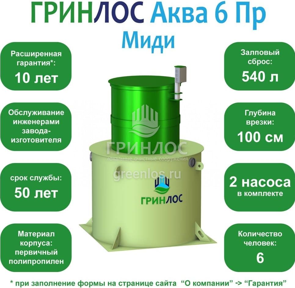 Септик ГРИНЛОС Аква 6 Пр Миди в Санкт-Петербурге
