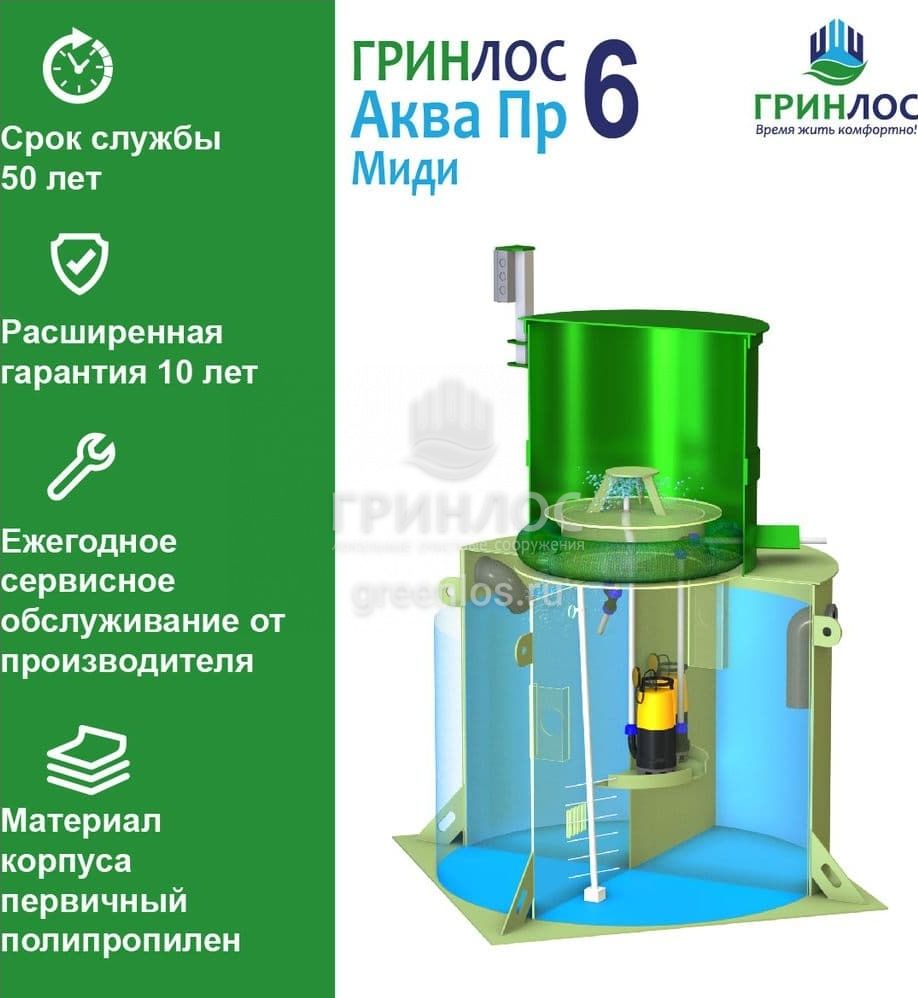 Модификации септика ГРИНЛОС Аква 6 Пр Миди