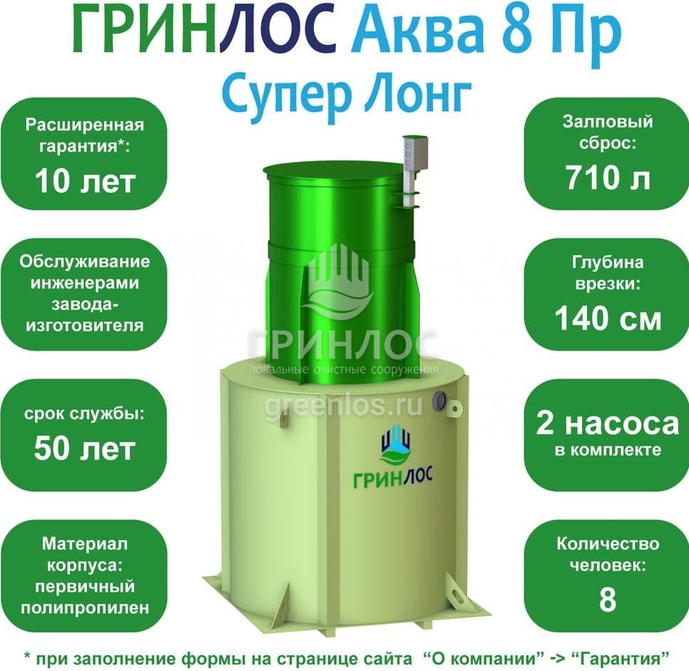 Модификации септика ГРИНЛОС Аква 8 Пр Супер Лонг