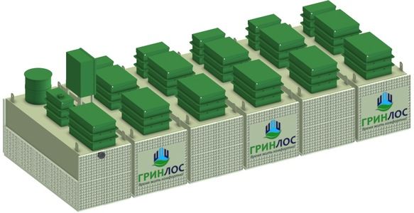 Модульная конструкция, включающая 6 блоков (5200*2000*2580 мм) с автоматизироанным управлением, легко масштабируется под нужды объекта и не требует постоянного вмешательства оператора.