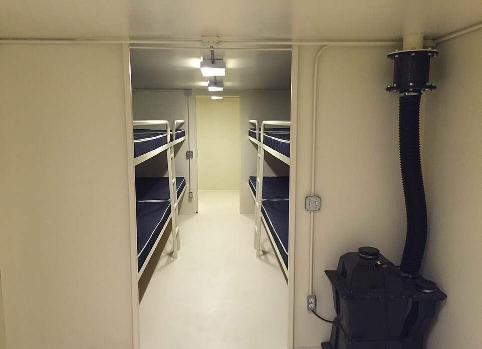 Бункер ГРИНЛОС имеет приточную вентиляцию и может быть полностью автономным в период отключения электроэнергии. Есть возможность подключения к временному генератору для внутреннего освещения.