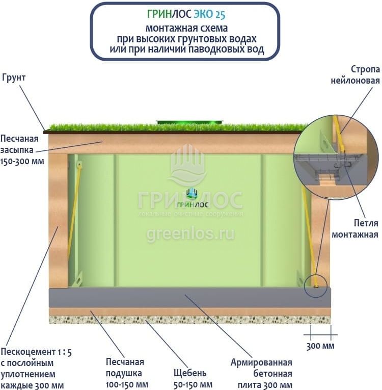 Отличительными особенностями септика ГРИНЛОС Эко 25 являются: