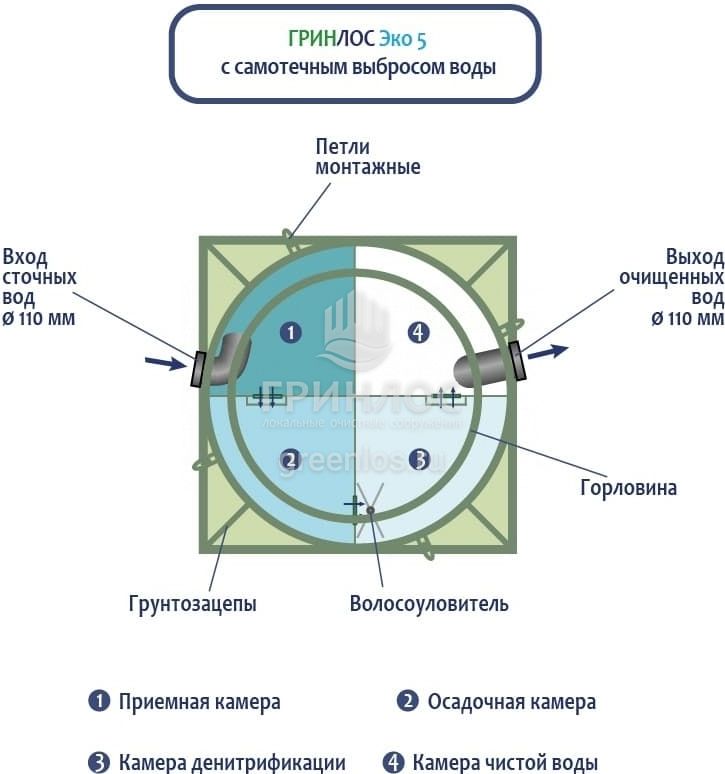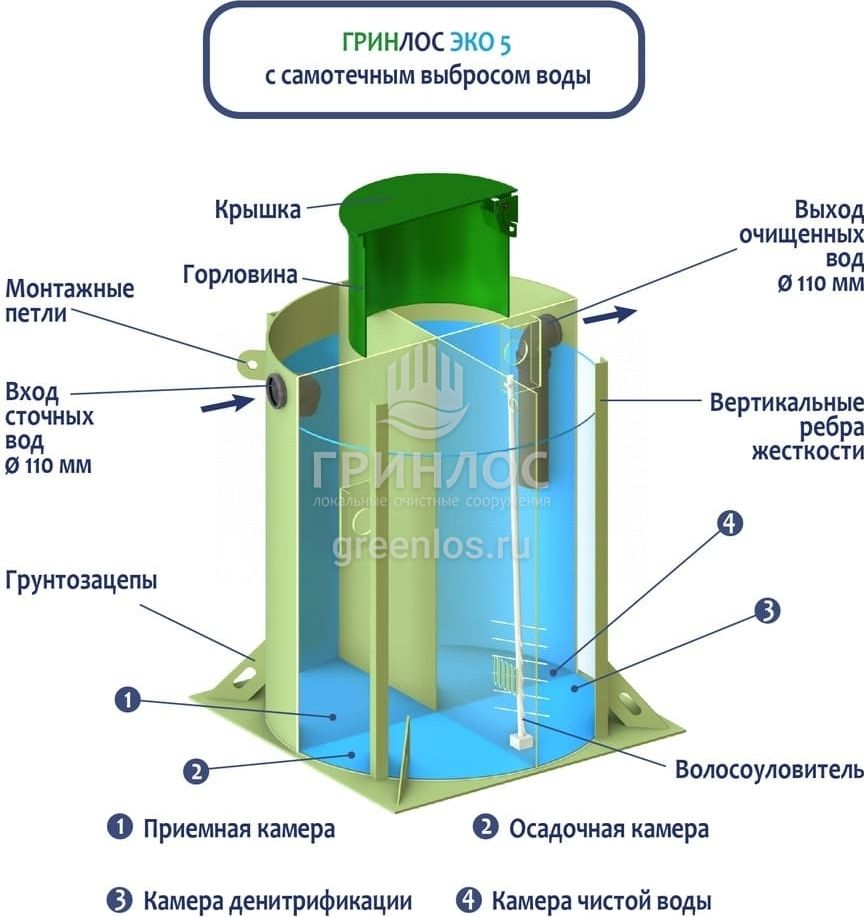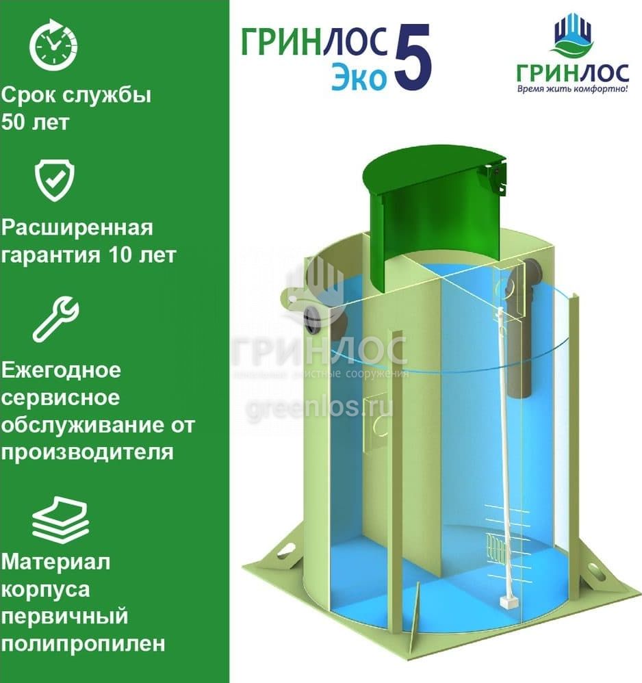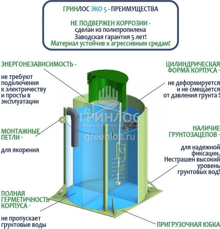 Отличительными особенностями септика ГРИНЛОС Эко 5 являются: