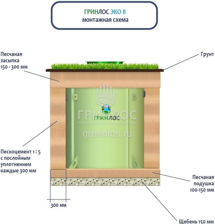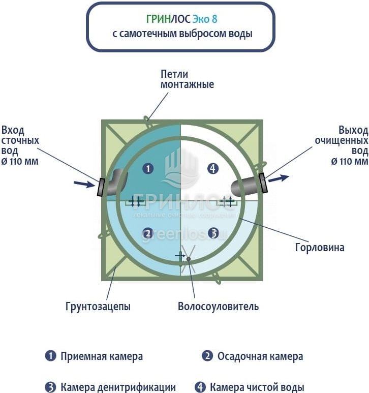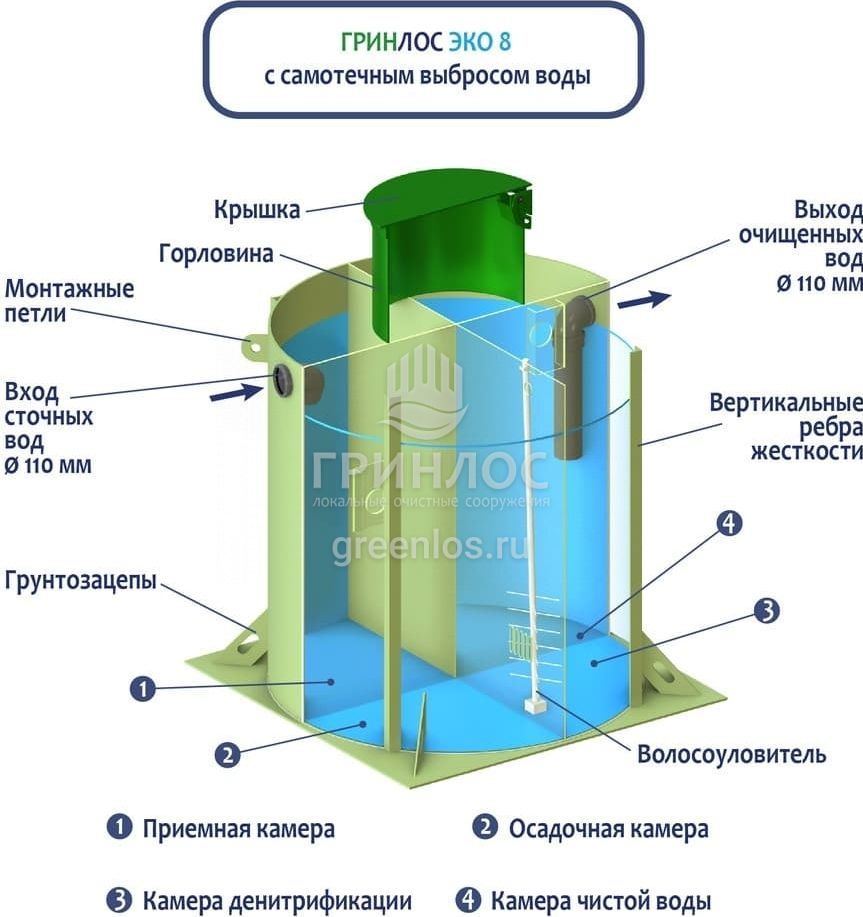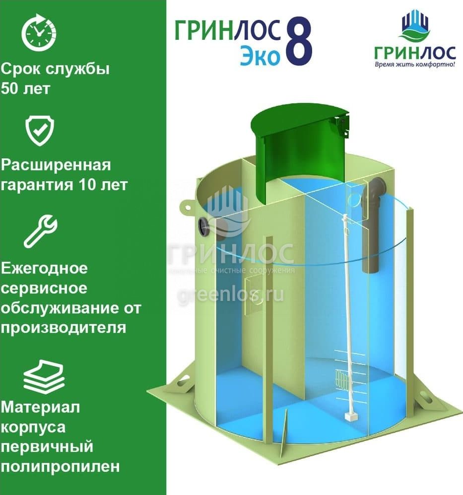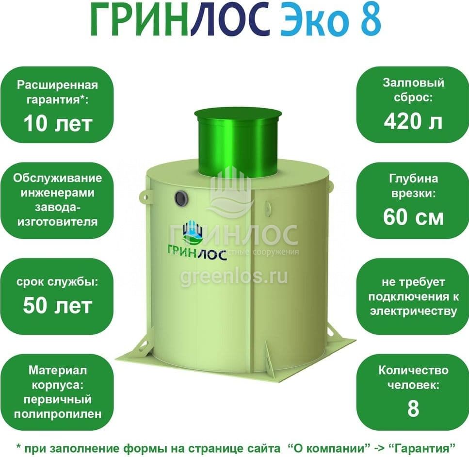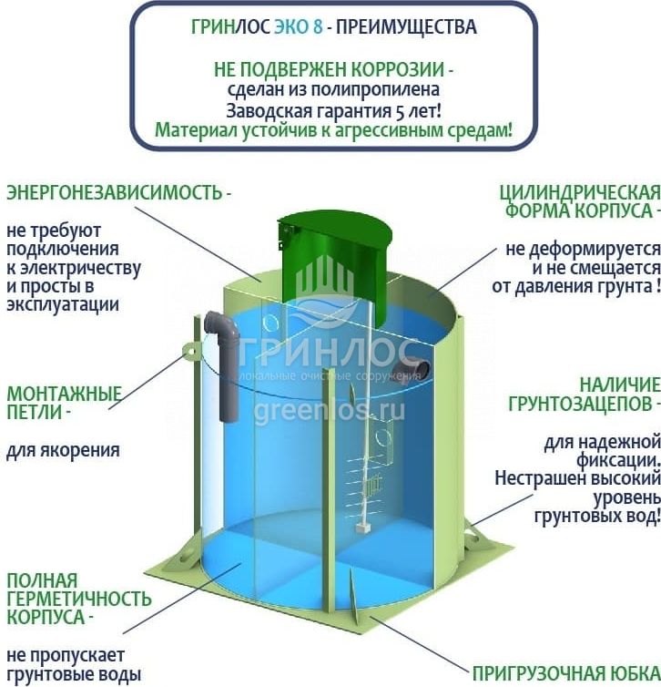 Отличительными особенностями септика ГРИНЛОС Эко 8 являются:
