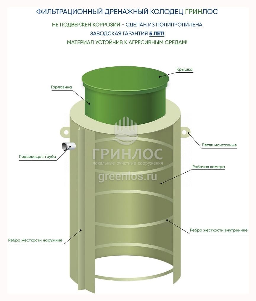 Особенности фильтрационного дренажного колодца ГРИНЛОС Колодец ФД 1200/3000