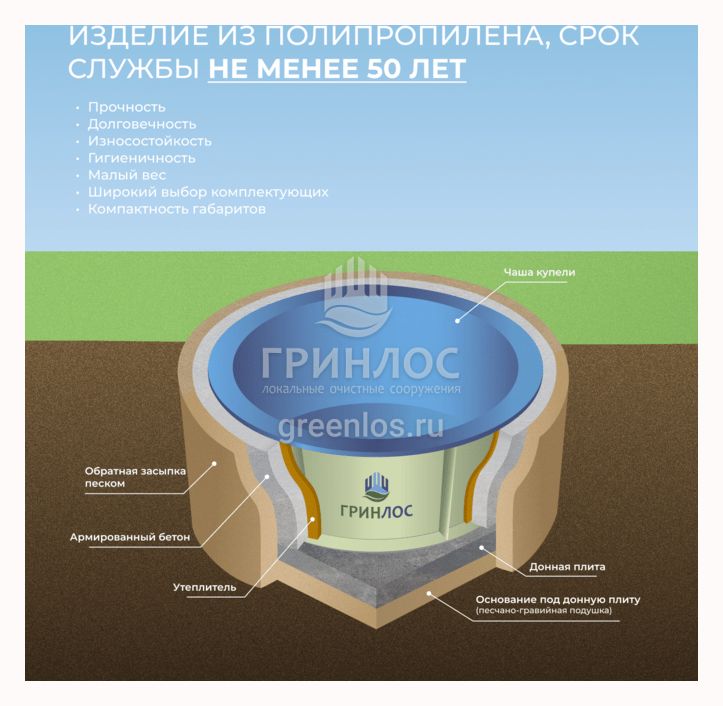 Преимущества ГРИНЛОС Купель 1500*1500*1500 Круглая