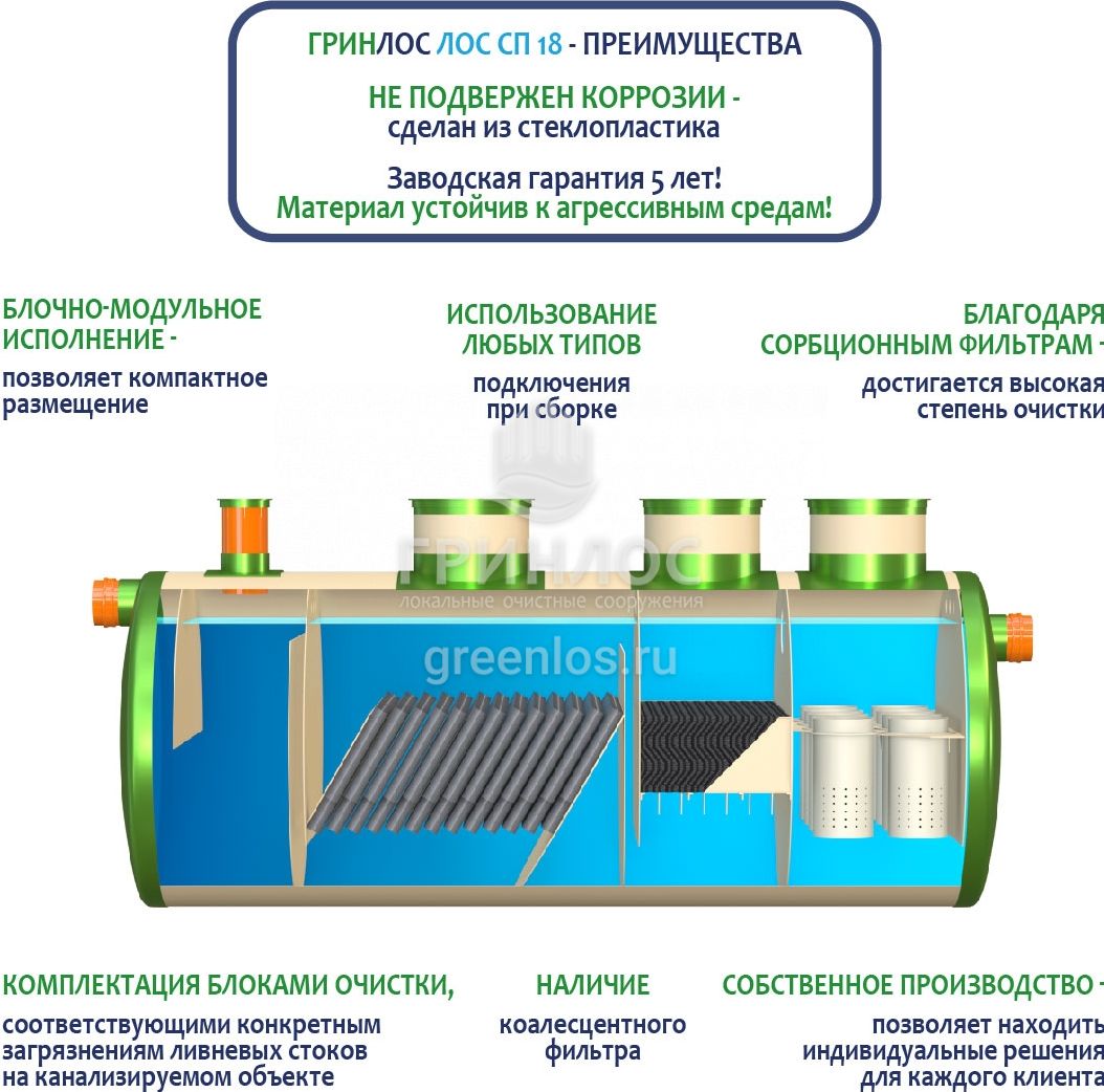 Особенности ГРИНЛОС Ливневая канализация 18-2300 стеклопластиковая