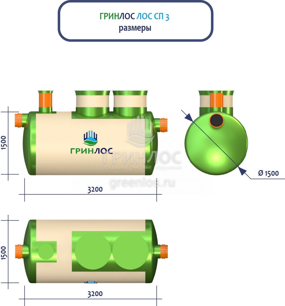 ГРИНЛОС Ливневая канализация 3-1500 стеклопластиковая представляет собой очистное сооружение ливневых стоков габаритами 3200*1500*1500 - 1 корпус. Общий объем корпусов составляет 5.7 м3. Для установки станции потребуется применение вспомогательного оборудования.