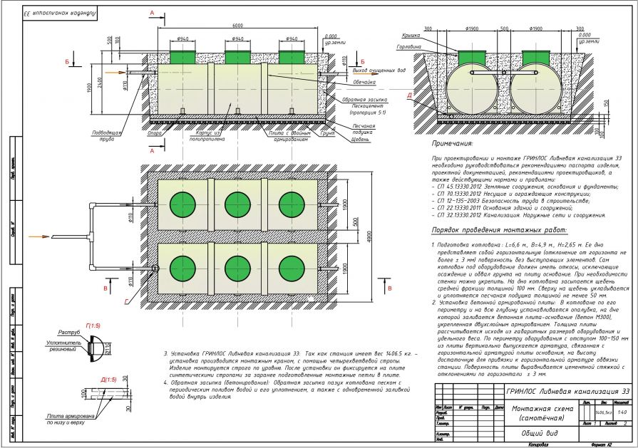 При проектировании и монтаже ГРИНЛОС Ливневая канализация 33 необходимо руководствоваться рекомендациями паспорта изделия, проектной документацией, рекомендациями проектировщиков, а также действующими нормами и правилами:
