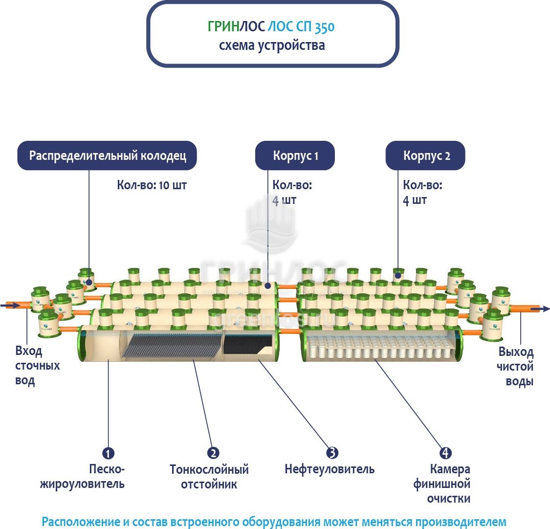 Гринлос ЛК 350-2300 Сп выполнена из стеклопластика – инертного материала, устойчивого к агрессивным средам.