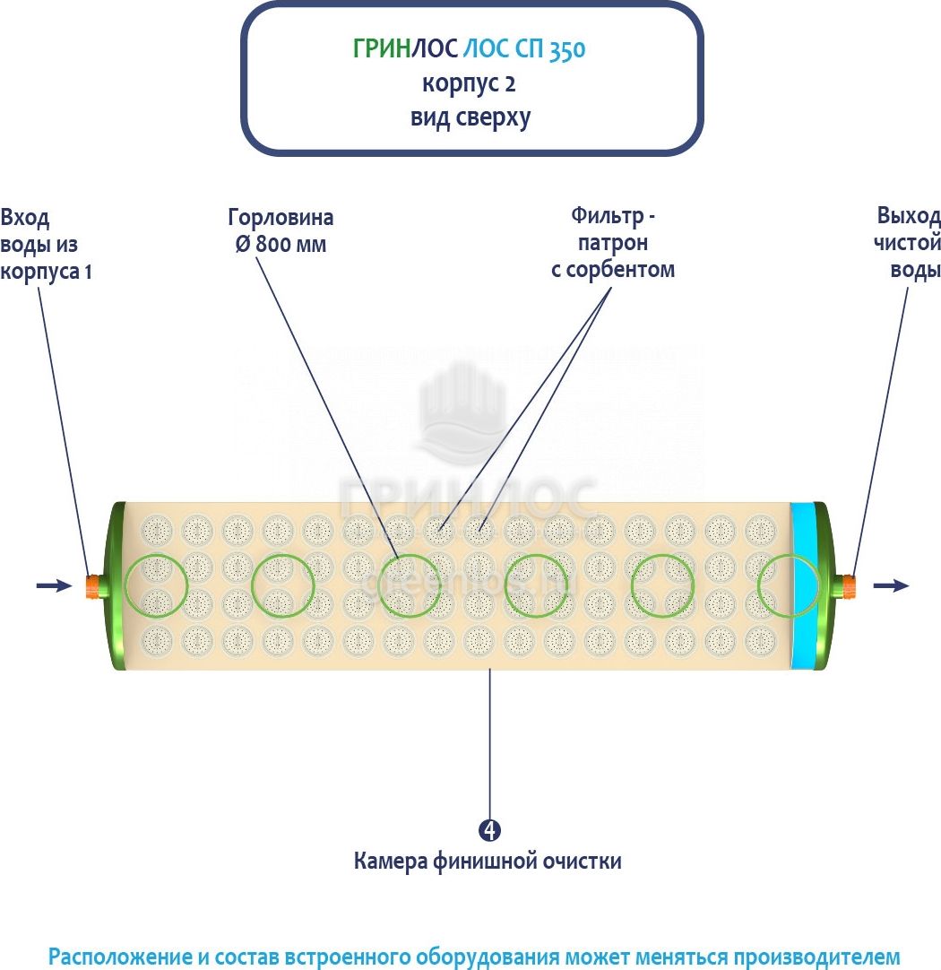 Гринлос ГРИНЛОС Ливневая канализация 350-2300 стеклопластиковая - Внутреннее устройство корпусов 1 и 2, вид сверху