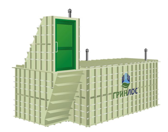 «ГРИНЛОС Погреб» представляет собой герметичное техническое помещение габаритами 1.5x1.5x2 м, предназначенное для заглубления в землю. Для удобства и простоты доступа внутрь, вход выполнен вертикально и представляет собой коридор с лестницей. Размеры погреба со входом составляют 2.5x2x3.7 м. Для дополнительной защиты от промерзания имеется возможность установки второй двери. Погреб поставляется в полной заводской готовности для круглогодичного хранения продуктов питания – овощей, солений и др. домашних запасов.