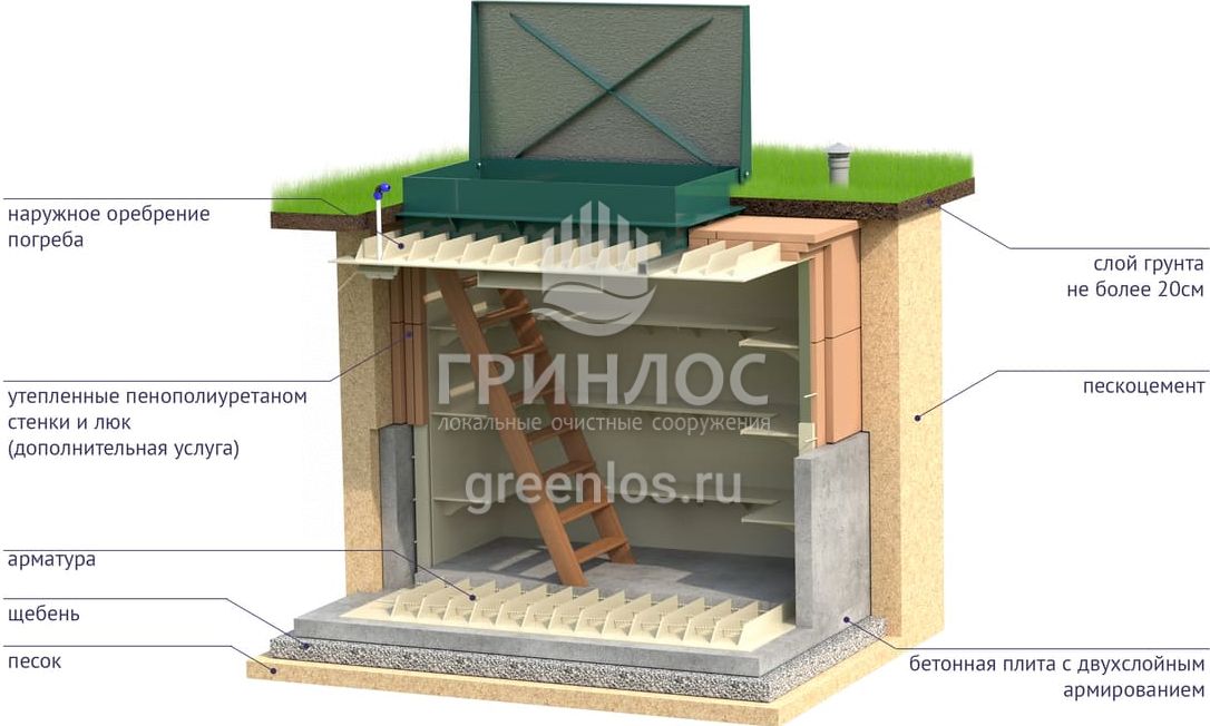 Особенности погреба Гринлос Погреб Погреб ЛК 2500*2000*2000