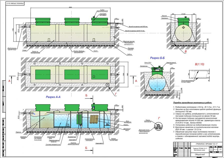 Монтаж септика ГРИНЛОС Профи 15 Пр