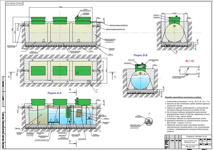 Монтаж септика ГРИНЛОС Профи 20 Пр