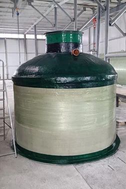 Стандартный промышленный жироуловитель из полипропилена имеет два отсека, которые соединяет специальная труба.