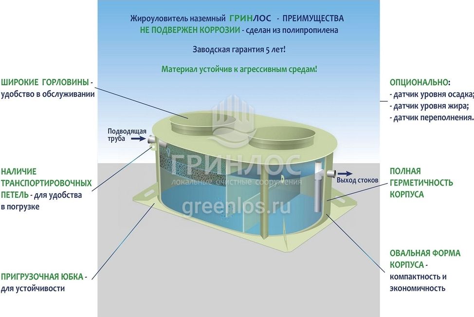 Преимущества Гринлос Жироуловитель 11-600 Горизонтальный Наземный
