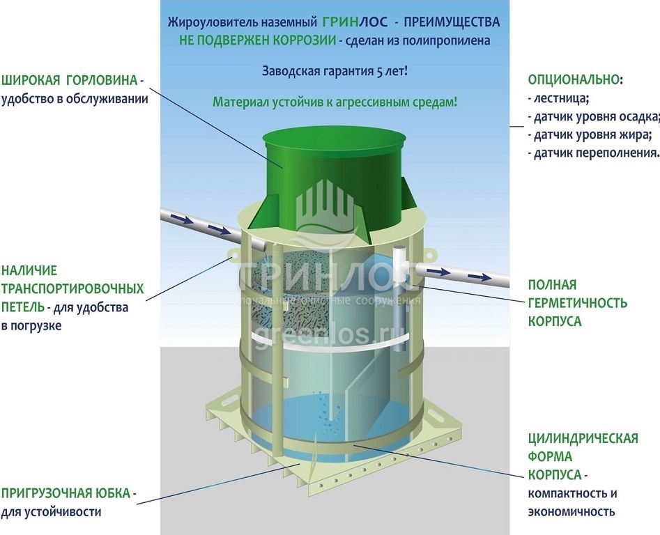 Преимущества Гринлос Жироуловитель 14-800 Вертикальный Наземный