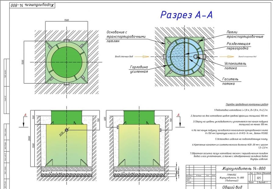 Монтаж Гринлос Жироуловитель 14-800 Вертикальный Подземный