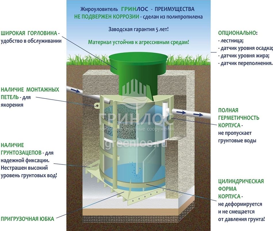 Преимущества Гринлос Жироуловитель 22-1000 Вертикальный Подземный