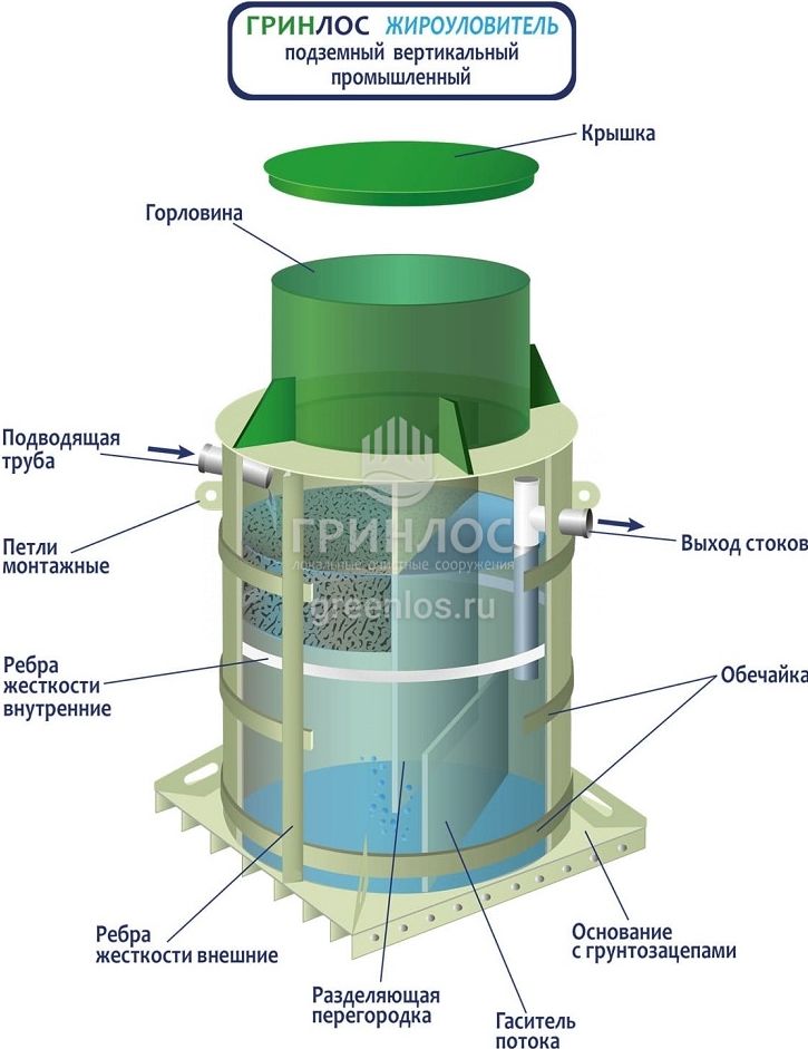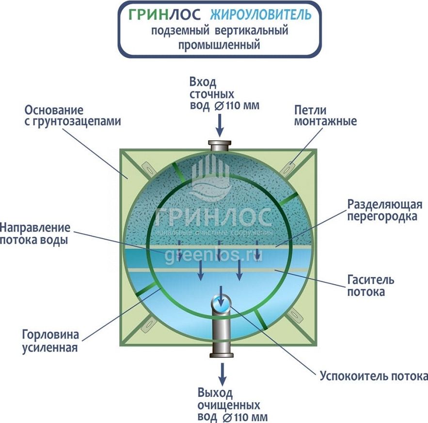 Внутреннее устройство и принцип работы Гринлос Жироуловитель 22-1000 Вертикальный Подземный