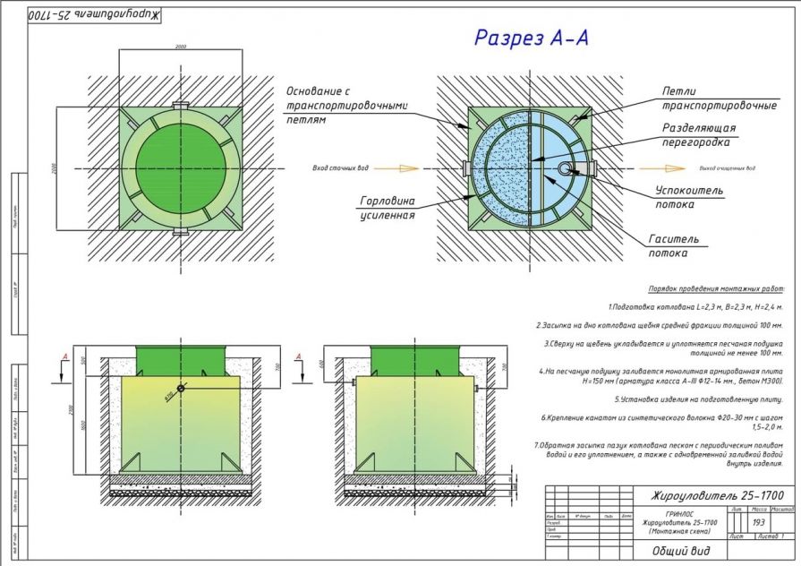 Монтаж Гринлос Жироуловитель 25-1700 Вертикальный Подземный