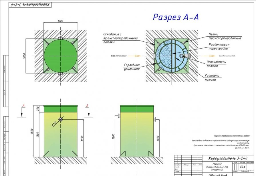 Гринлос Жироуловитель 3-240 Вертикальный Наземный ставят в технические, подвальные помещения. Требуется, чтобы к ним был организован удобный подход, подъезд, чтобы проводить эксплуатацию, подключение к производственной канализации.