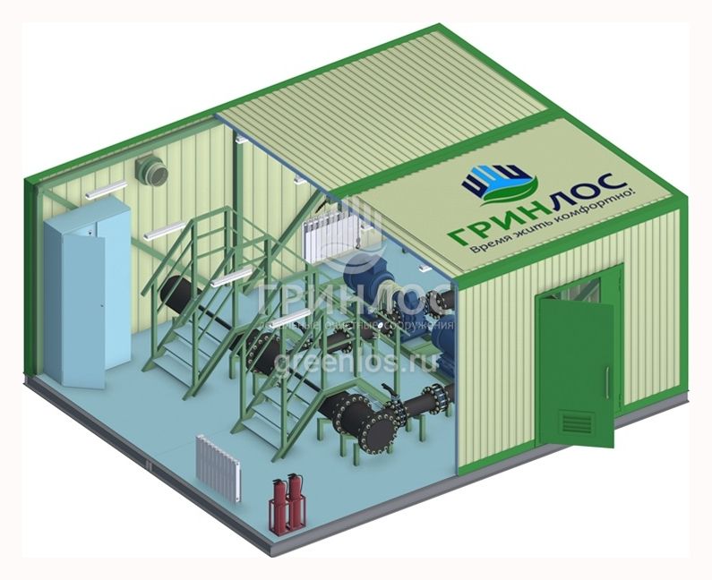 Прочный павильон защищает нефтеперекачивающую насосную станцию НпС 70-85 от механических и климатических воздействий, обеспечивая долговечность конструкции.