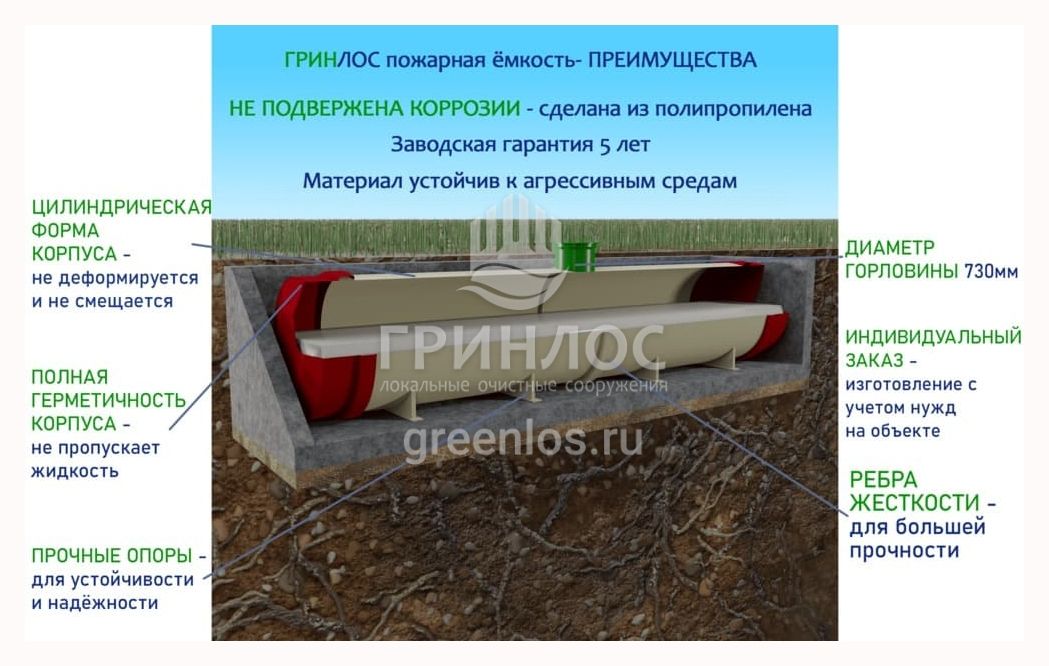 Особенности ГРИНЛОС Пожарный резервуар 200 м3