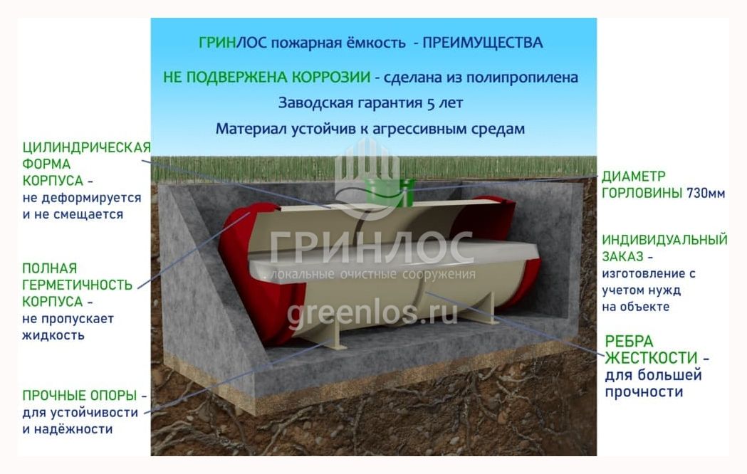 Особенности ГРИНЛОС Пожарный резервуар 35 м3