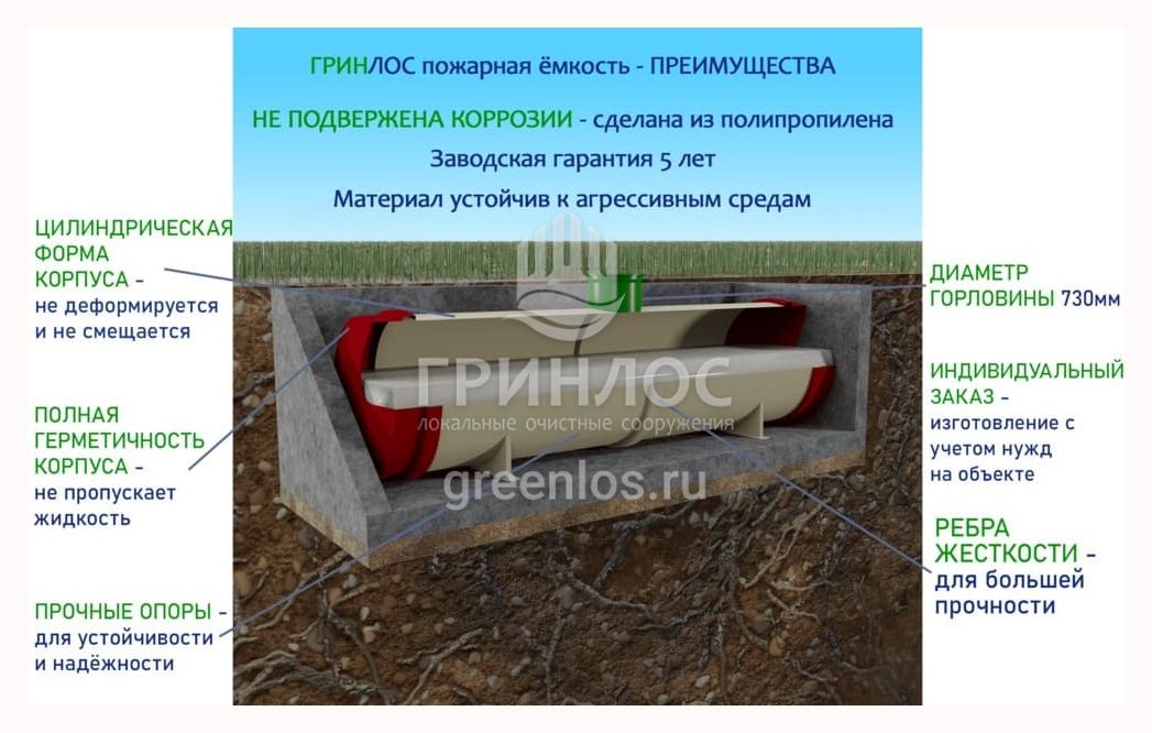 Особенности ГРИНЛОС Пожарный резервуар 75 м3