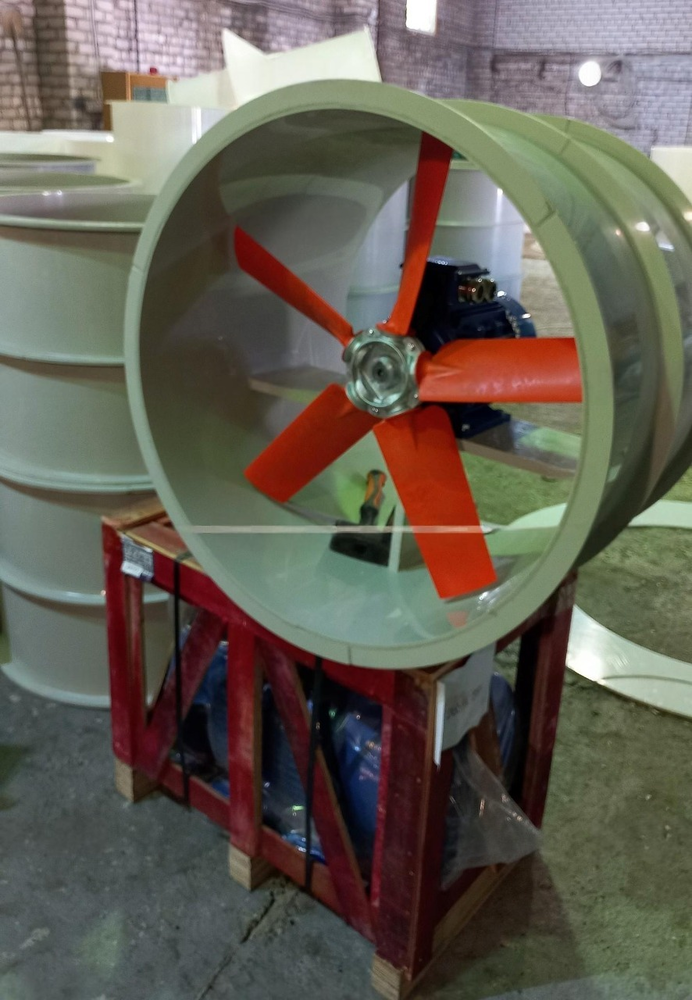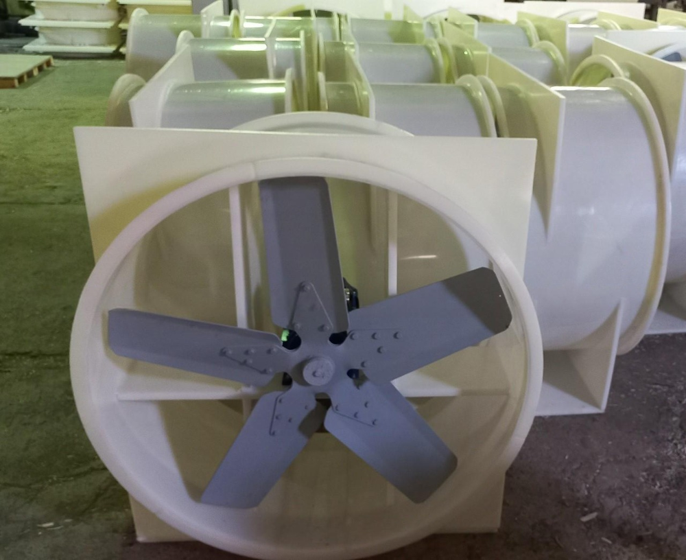 - Использование полипропилена в конструкции промышленного осевого вентилятора обеспечивает высокую устойчивость к коррозии и другим агрессивным воздействиям, это существенно увеличивает срок службы устройства.